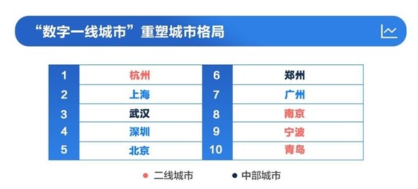 中國“數(shù)字一線城市”排名出爐:杭州第一 鄭州第六