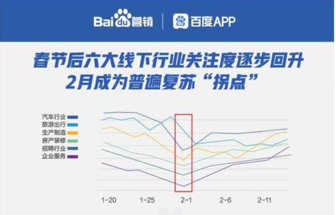 2月開始,大多數(shù)行業(yè)需求逐步回升,生產(chǎn)制造、房產(chǎn)裝修、招聘、企業(yè)服務(wù)等4個行業(yè)復(fù)蘇較快。