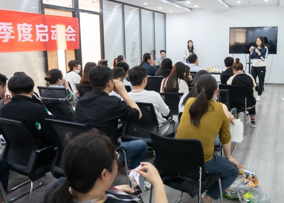 會議第一項,團隊士氣展示,各個部門的員工上臺,展示出了自己團隊的風(fēng)姿與高昂的士氣。